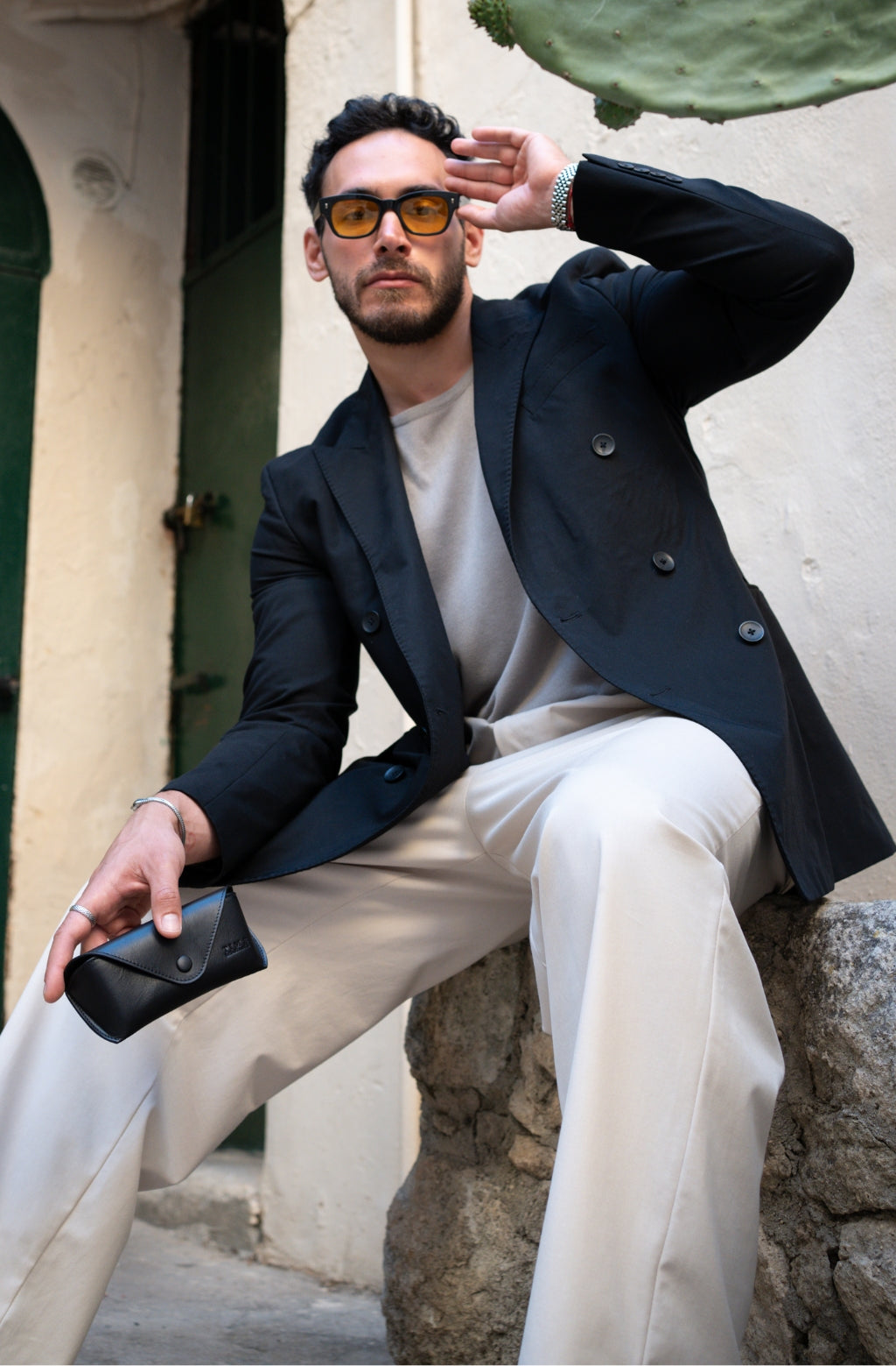 Minimal in form, rich in character. A High Wind In Jamaica is a structured leather glasses case crafted to protect your eyewear with quiet sophistication. Made from full-grain Italian leather, it’s a compact companion that slips easily into your bag or coat pocket. Whether it’s your everyday glasses or favorite sunglasses, this case holds them securely - no fuss, no flash, just timeless quality with a touch of old-world charm.