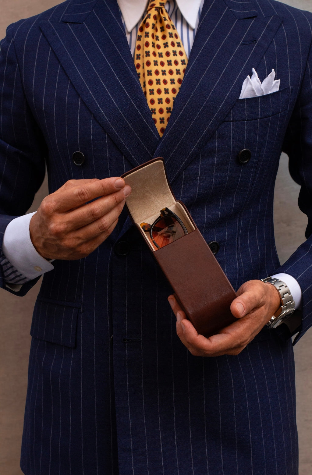 Crafted with precision from the finest Italian leather, each case is a testament to our commitment to quality and tradition. Designed with a minimalistic aesthetic and a magnetic closure for effortless access, this case exudes sophistication and practicality in equal measure. Hand-dyed using vegetable tanning techniques, the leather boasts a rich, natural patina that only improves with age. Our logo is discreetly embossed on the front flap, a subtle nod to the discerning craftsmanship within. Elevate your eyewear experience with this luxurious accessory, where style meets substance in perfect harmony.